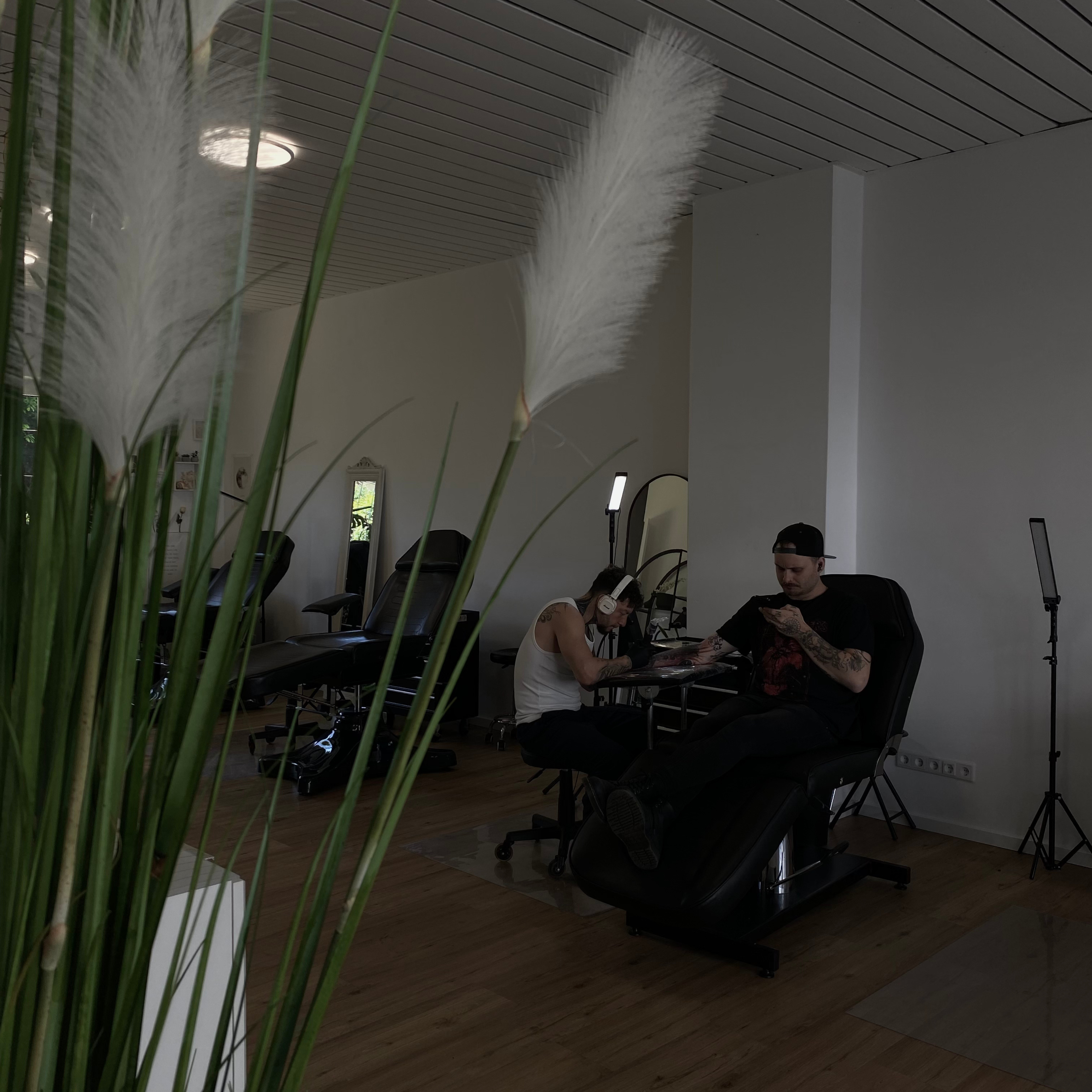 Der nächste Schritt war Wachstum. Ein neues Studio, mehr Raum und ein Team, das dieselben Werte lebt. Heute sind wir fünf Menschen, verbunden durch die gemeinsame Vision, Tattoos mit Qualität, Verantwortung und echtem Anspruch zu schaffen.